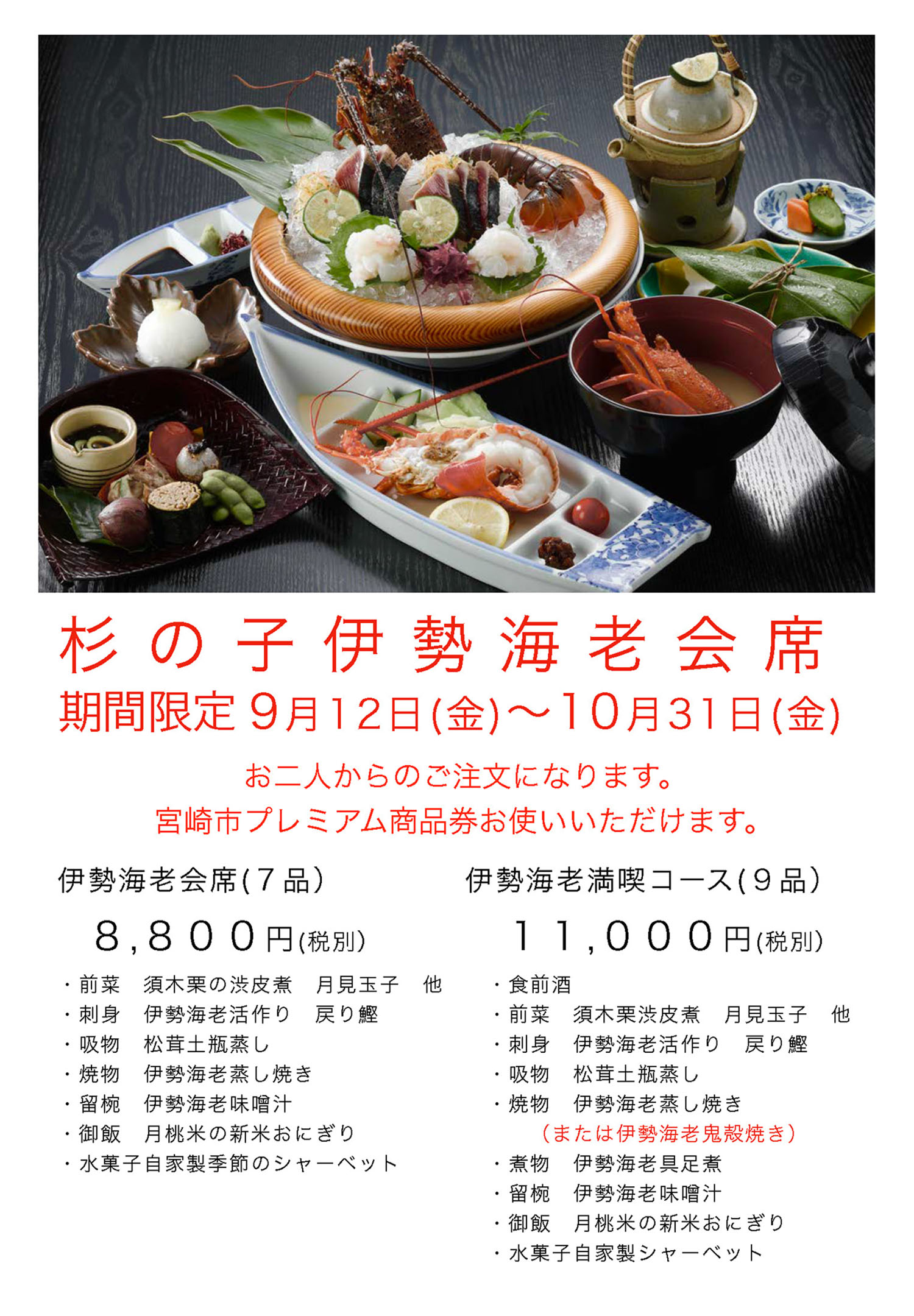 【期間限定】杉の子伊勢海老会席 ※9/12(金)~10/31(金)